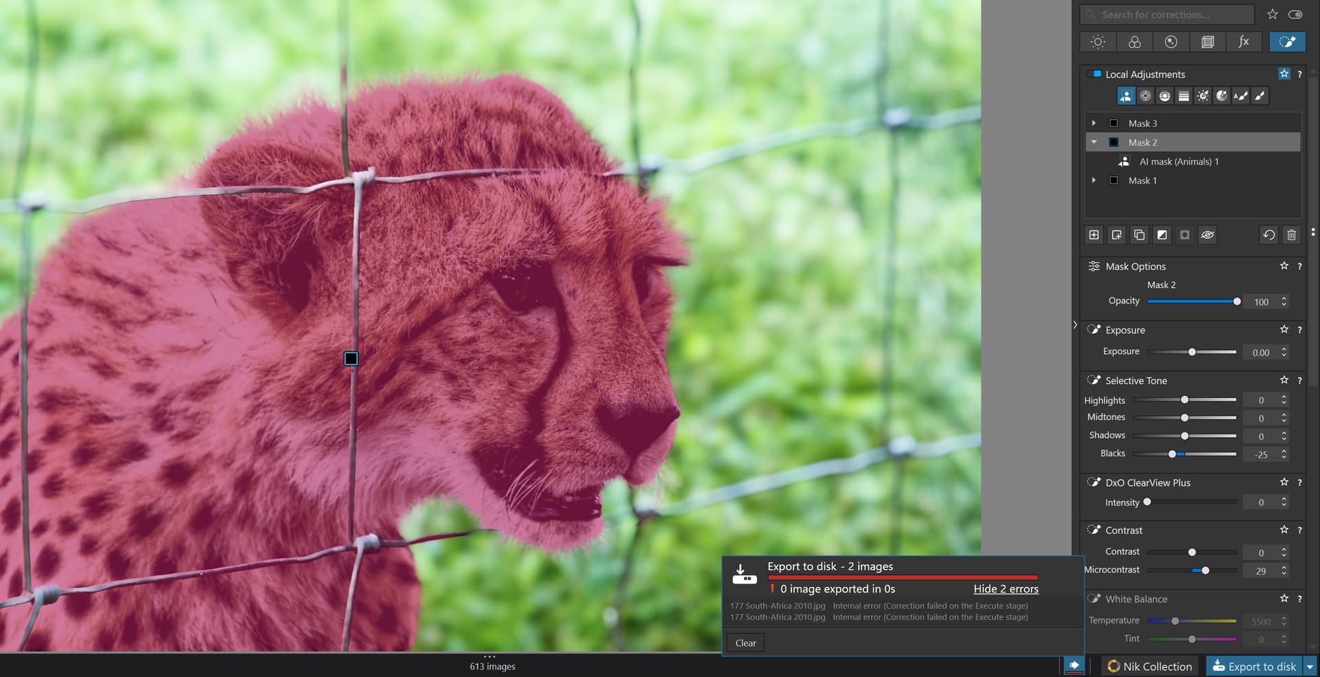 “Animals” failed even with this Caracal-picture which is pretty bad. I think DXO has some more work to do here. Still wondering why, the free hand method works even here instantly.