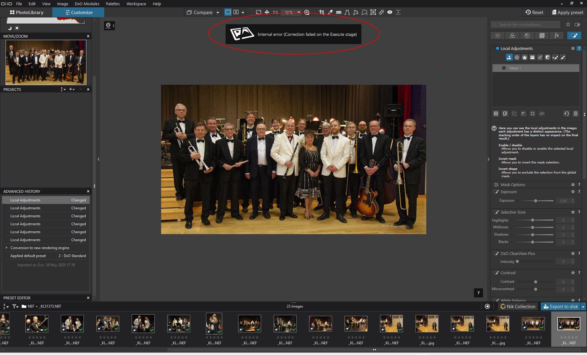 Some times, when using the Local Adjustments AI mask with preset “People” or alike, and the system does not find anything matching, the program will give “Internal error” and freeze. Needs to be re-started to proceed.