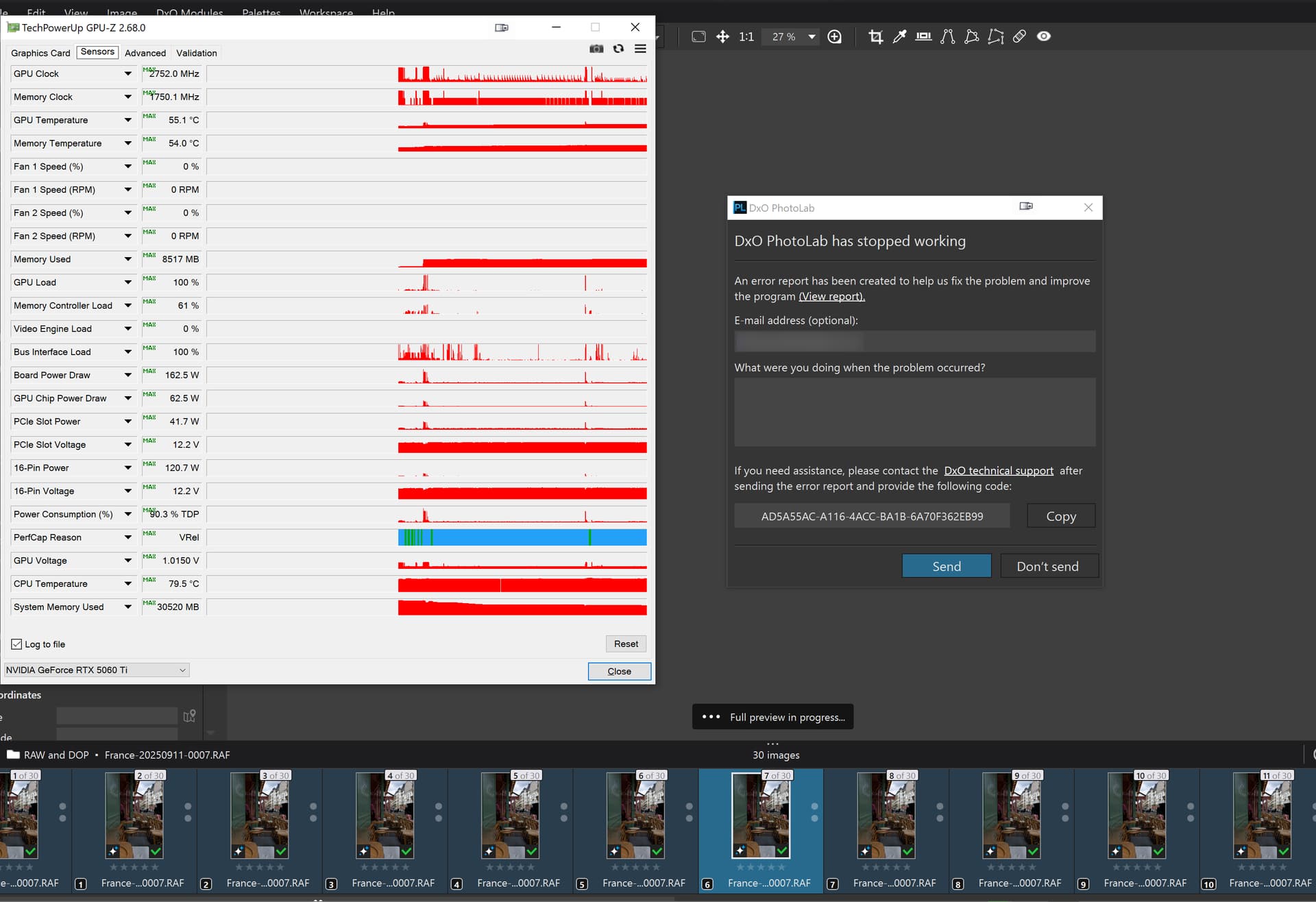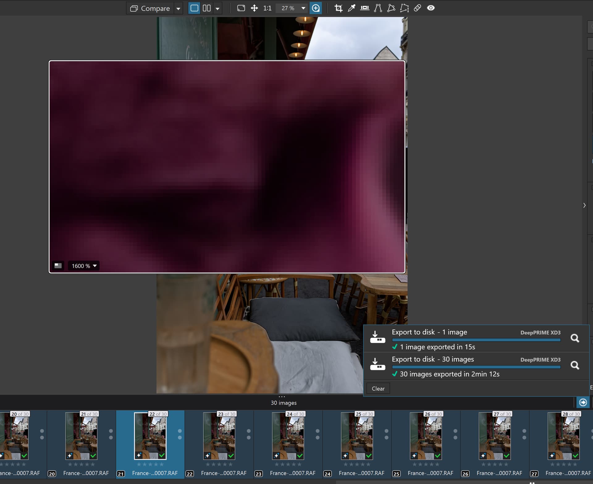 Before each test: i select the photo (i made with Virtual copies), wait until ‘Full preview’ finish → Quit from PL → Start PL → And the last selected is open by default → does measurements. So, each of the test runs is ‘clean state’..