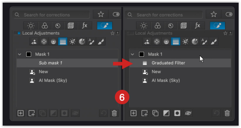 To integrate the Graduated Filter in the sameMask 1 … now use e.g. < Shift + GF >.