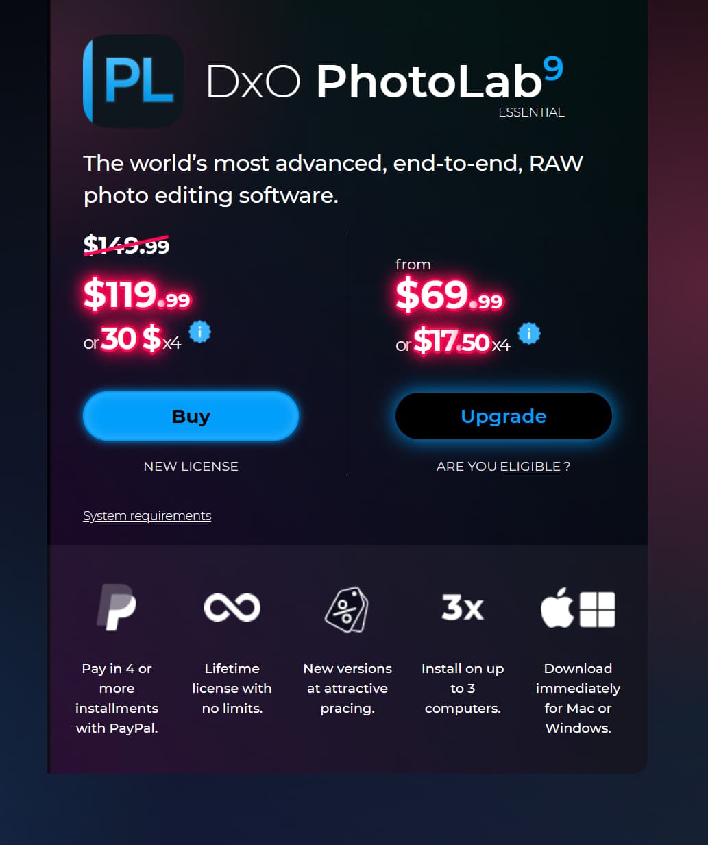 There’s an upgrade offer on PL9 but it’s $99.99 discounted from $119.99 so not a huge discount, but a reduction nonetheless. Filmpack 7 to 8 upgrade is a $10 saving on the full upgrade price.