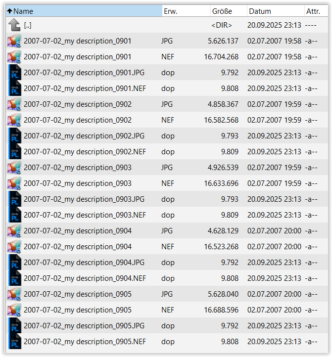I would definitely recommend this, as you don’t have to deal with derivatives from processing, whether DOP files or exported versions. I use a third-party app ( for Windows ) that allows all kinds of renaming. Just that instead of renaming the RAW and JPG file pairs in sequential order to 001, 002, 003, I simply keep the camera’s frame number, which has the same effect.