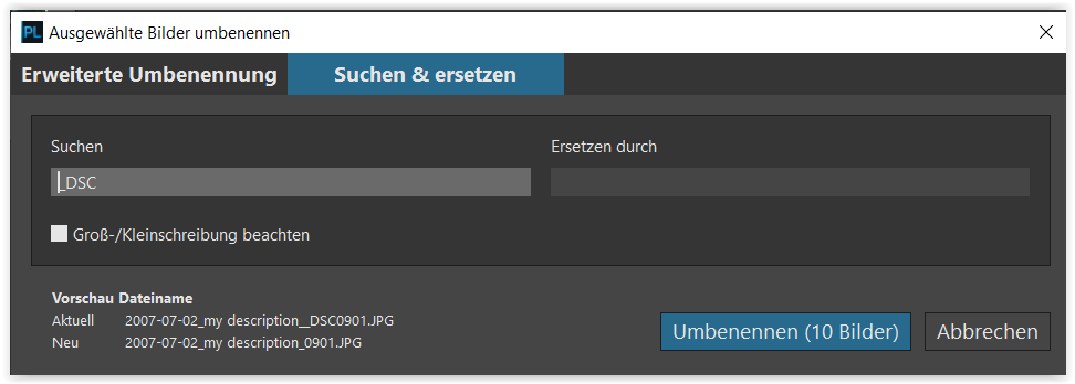 in a second step I remove “_DSC” from the file name