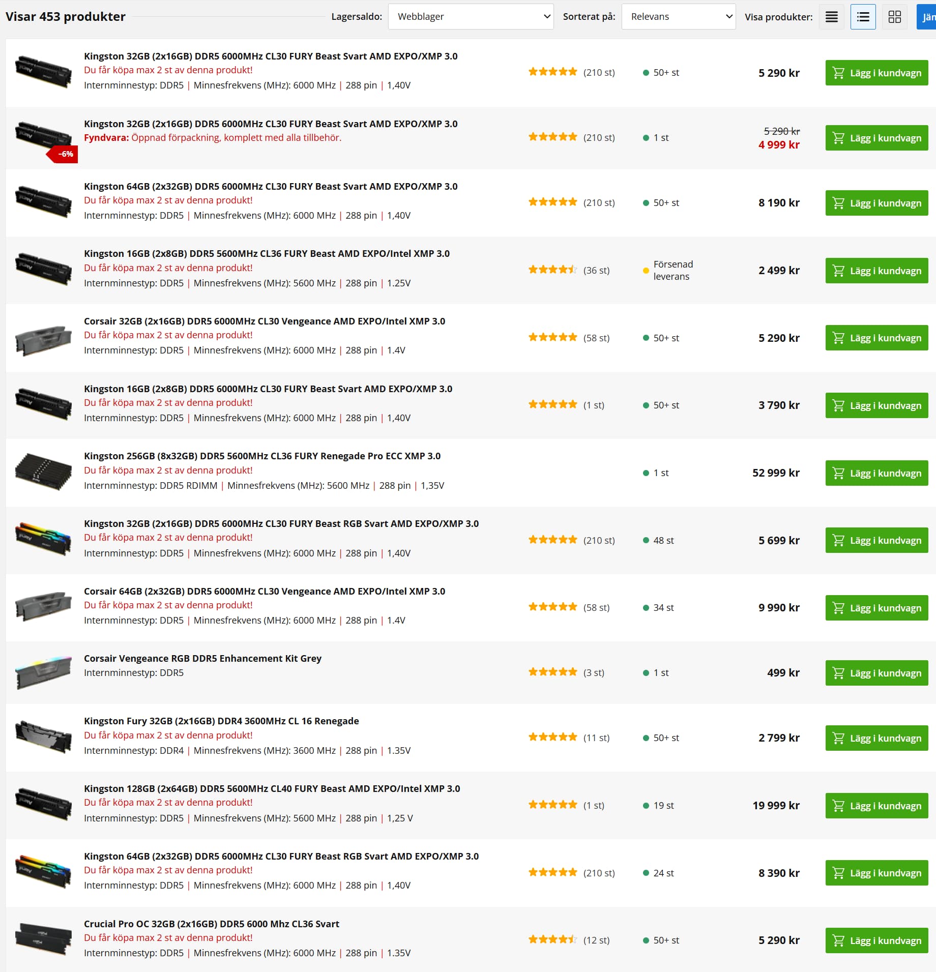 .. and 453 RAM products for under 1000 SEK to 50 000 SEK (4500 U$)