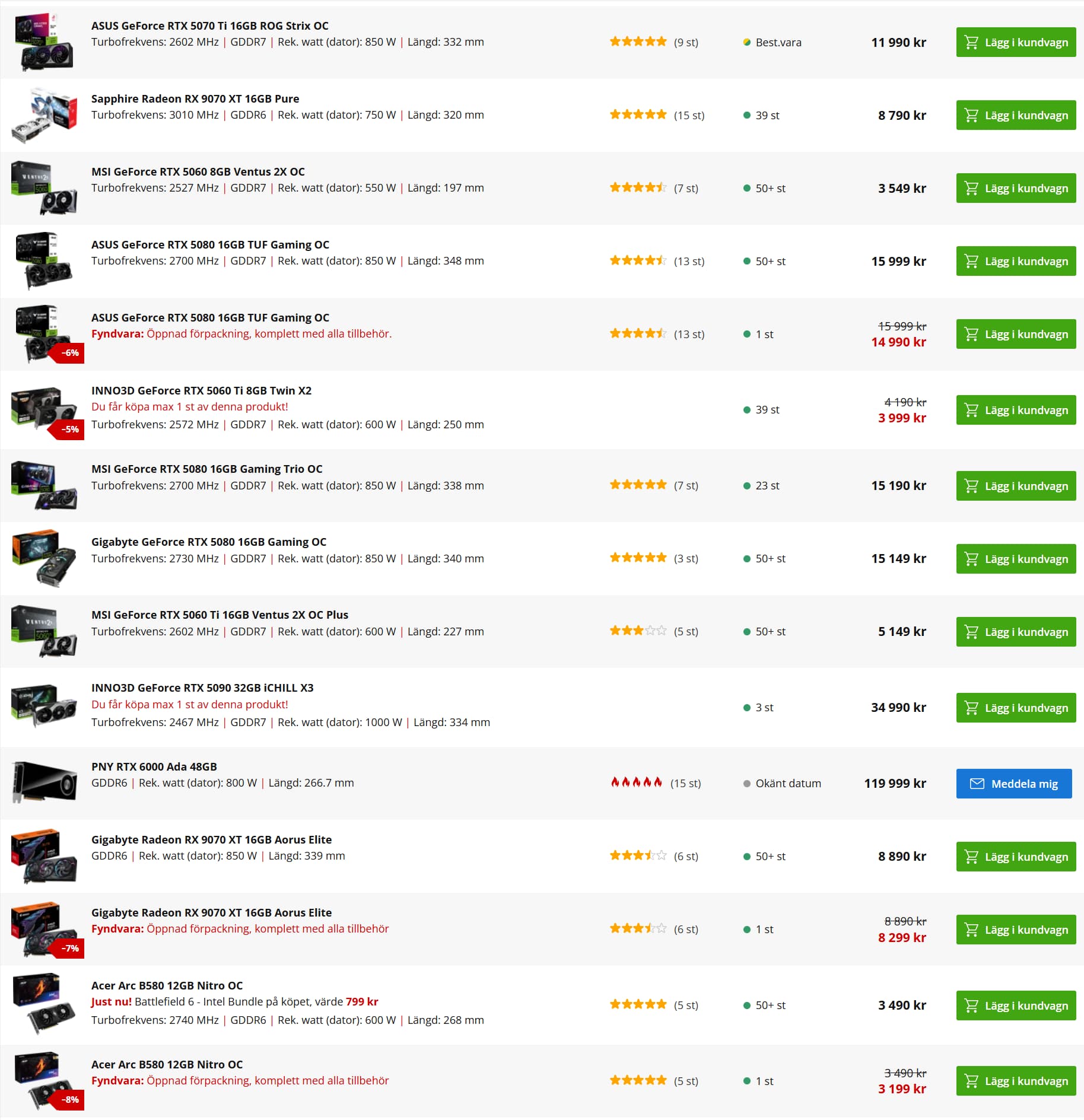 Below you can see part of a list of GPU-cards available for order at one of the biggest PC-builders in Stockholm: