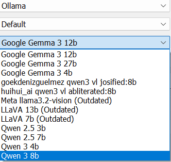 Ollama handles the following local AI-models in iMatch version 2025.7 ![]()