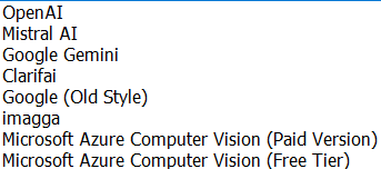Here is a link to some statistics from Photools community over how the use of different AI-sources are distributed in the use of iMatch DAM Autotragger