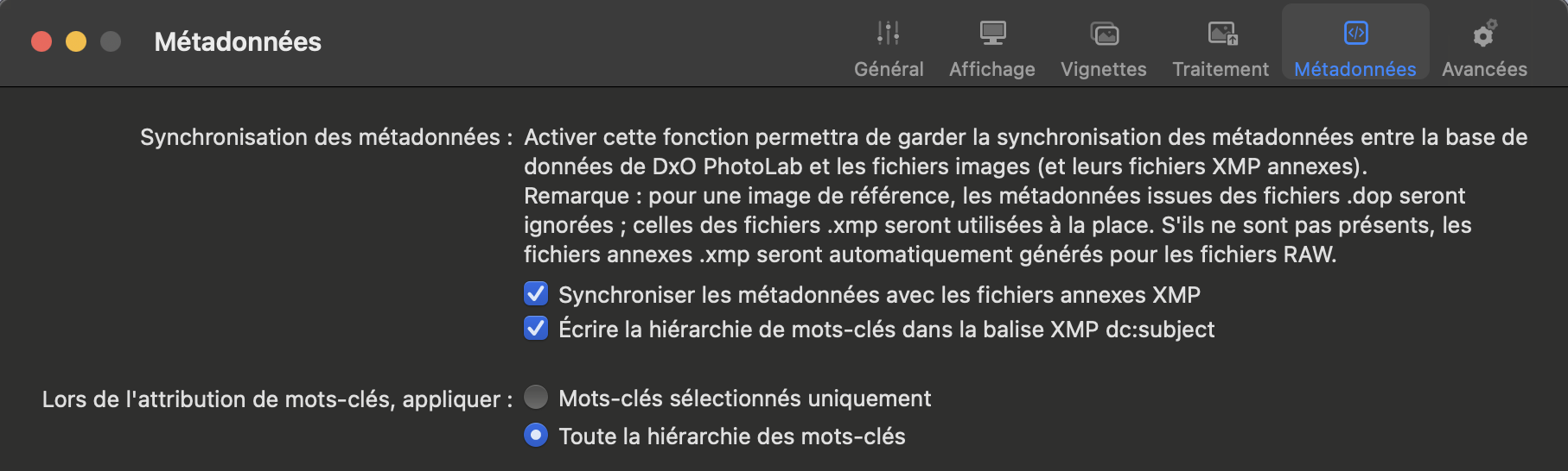 Voilà pourquoi j’ai tenté la gestion des mots clés via Bridge, or le fichier sidecar créé (un XMP) n’est pas pris en charge par DXO et lorsque je souhaite exporter mes RAW et les convertir en jpeg, seuls les mots clés créés dans photolab sont pris en charge, pas les XMP généré par Bridge.