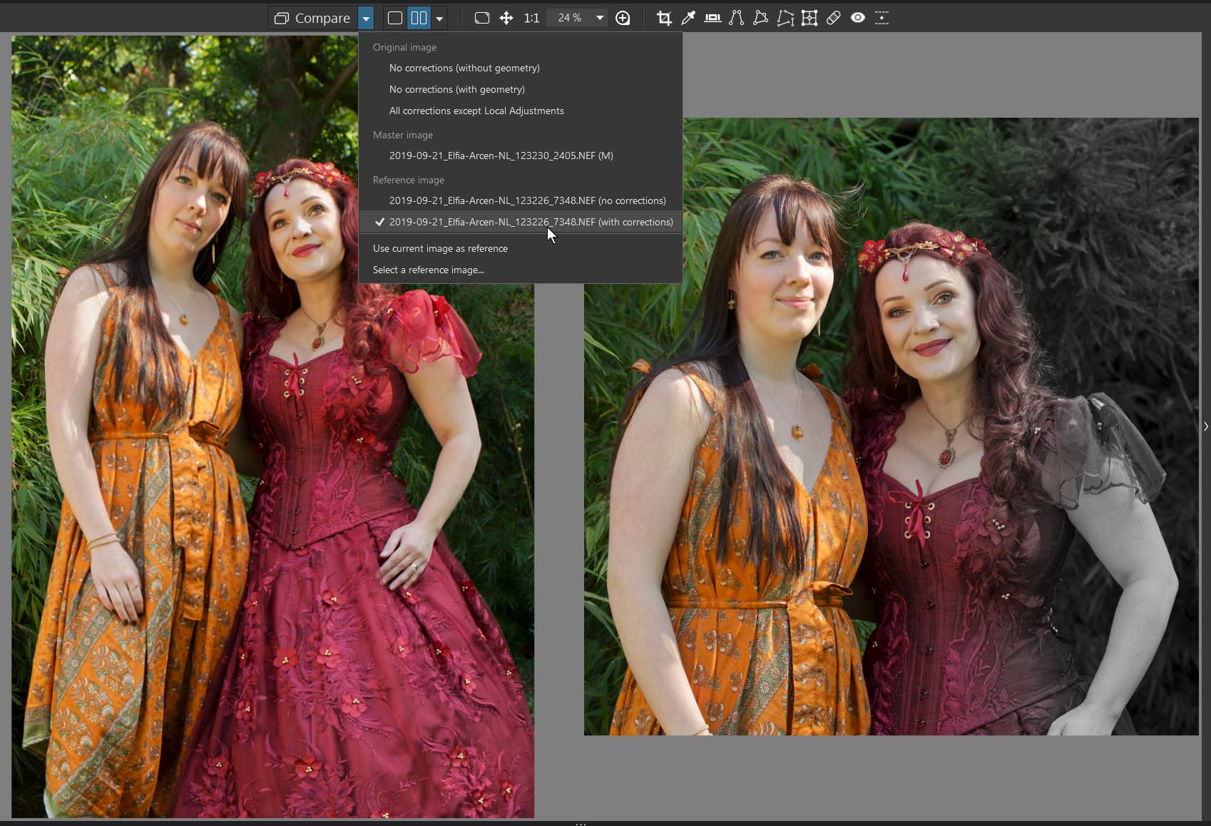 This is still the case—four years later with PL9. You cannot compare two different images side by side within the app. This is insane when it has been part of Lightroom for years now. During image selection, before I invest my time in processing, I find it very helpful to be able to examine two similar images to check overall composition, focus points, eyes, etc. at Fit view and at 100%, even 200%. It’s unfortunate this cannot be done within PL9, unless you want to waste time exporting images then looking at them in compare. My guess is, this is product of PL9 using an image browser, as opposed to a proper DAM.