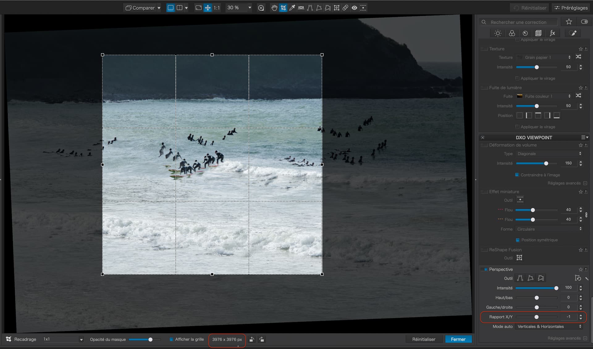 Note that the dimensions of the crop differ by 3 pixels. But, if I adjust the perspective ratio to -1…