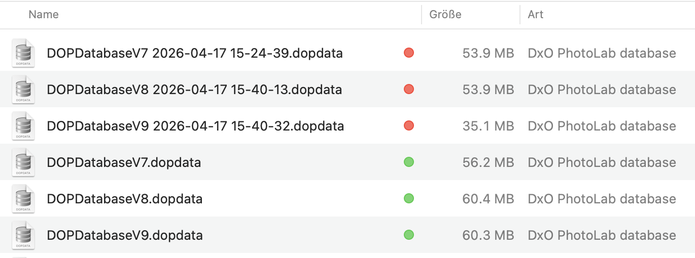 After deleting the databases of PL 7, 8 and 9, I had them re-index my photo archive. Doing this, I noticed that