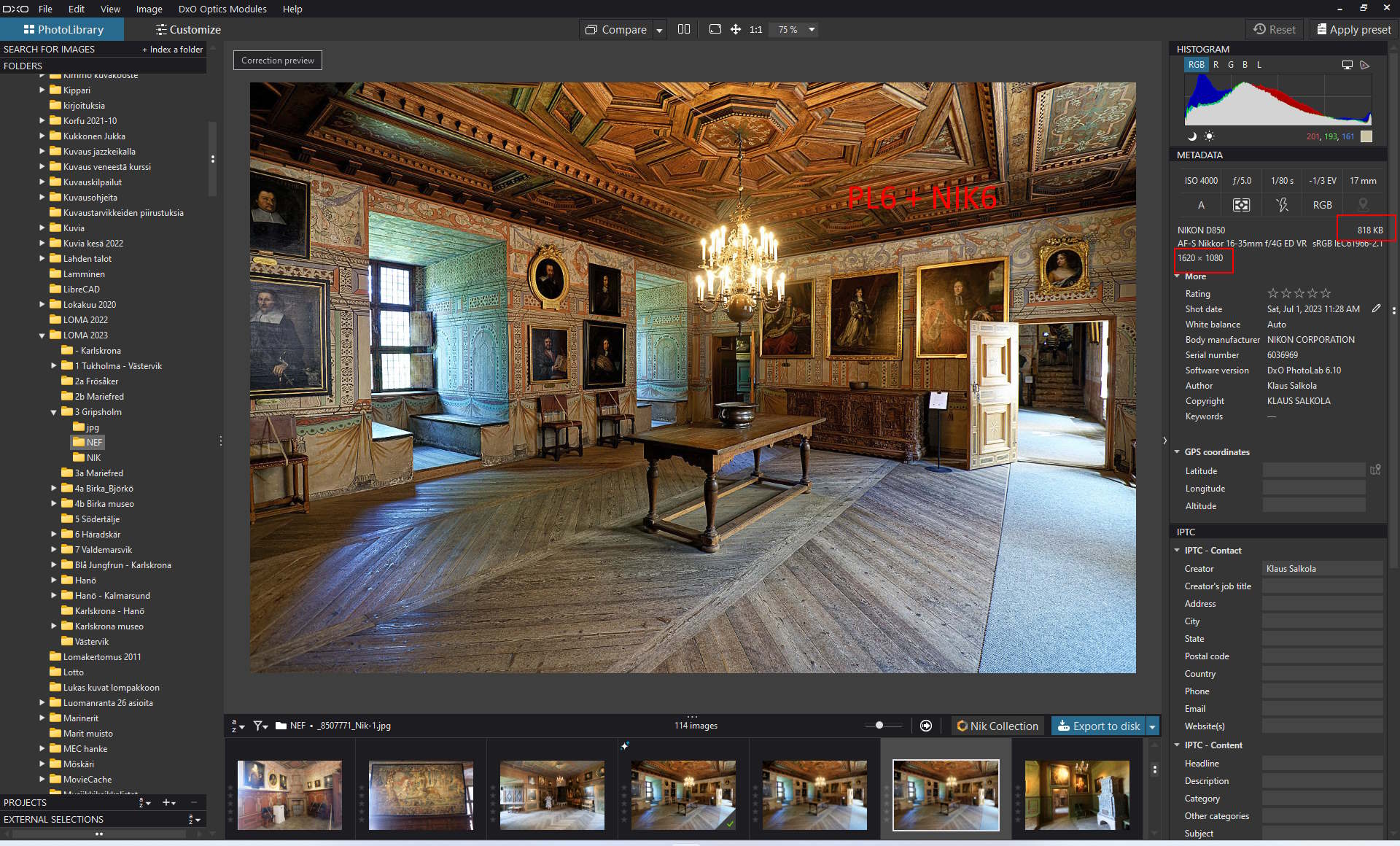 I found a picture processed earlier with PL6 + NIK5. The file size was 2.73 MB.
