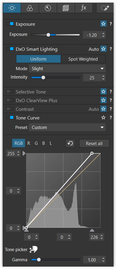 Okay, I must be missing something. In PL 9 under âLightingâ there is a âVignettingâ box. Under âCorrectionsâ you can allow PL to do it automatically or âManualâ to do it yourself. There are two sliders. The first is intensity and set at zero is where the corners are darkest. As you slide to the right corners brighten. So you canât really add much of a vignetting effect. Then there is a âMiddleâ slider and honestly I cannot even tell what it actually does.