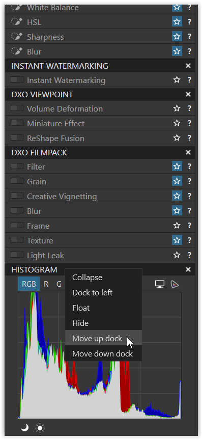Regarding your video, I can move HISTOGRAM and MOVE/ZOOM freely up and down like the others (which I positioned on the left) – they “stick in their box”.
