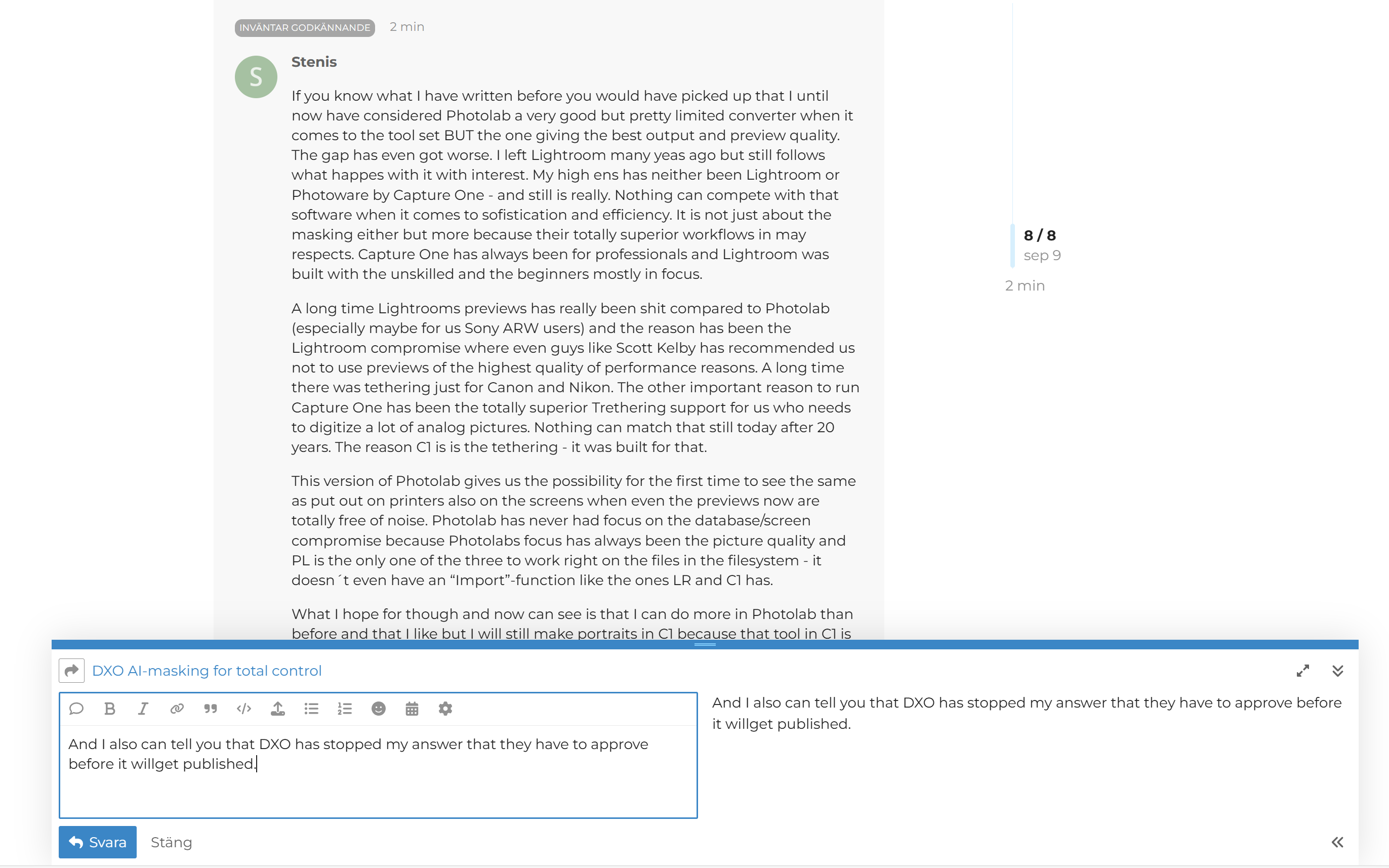 If you have been on this page for a while I you might have seen that it is often me here that have been and still is one of DXO:s hardest critical voice. I doubt anyone else here has got so many posts “flagged” and deleted just because that reason.