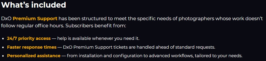 …DxO Premium Support tickets are handled ahead of standard requests.