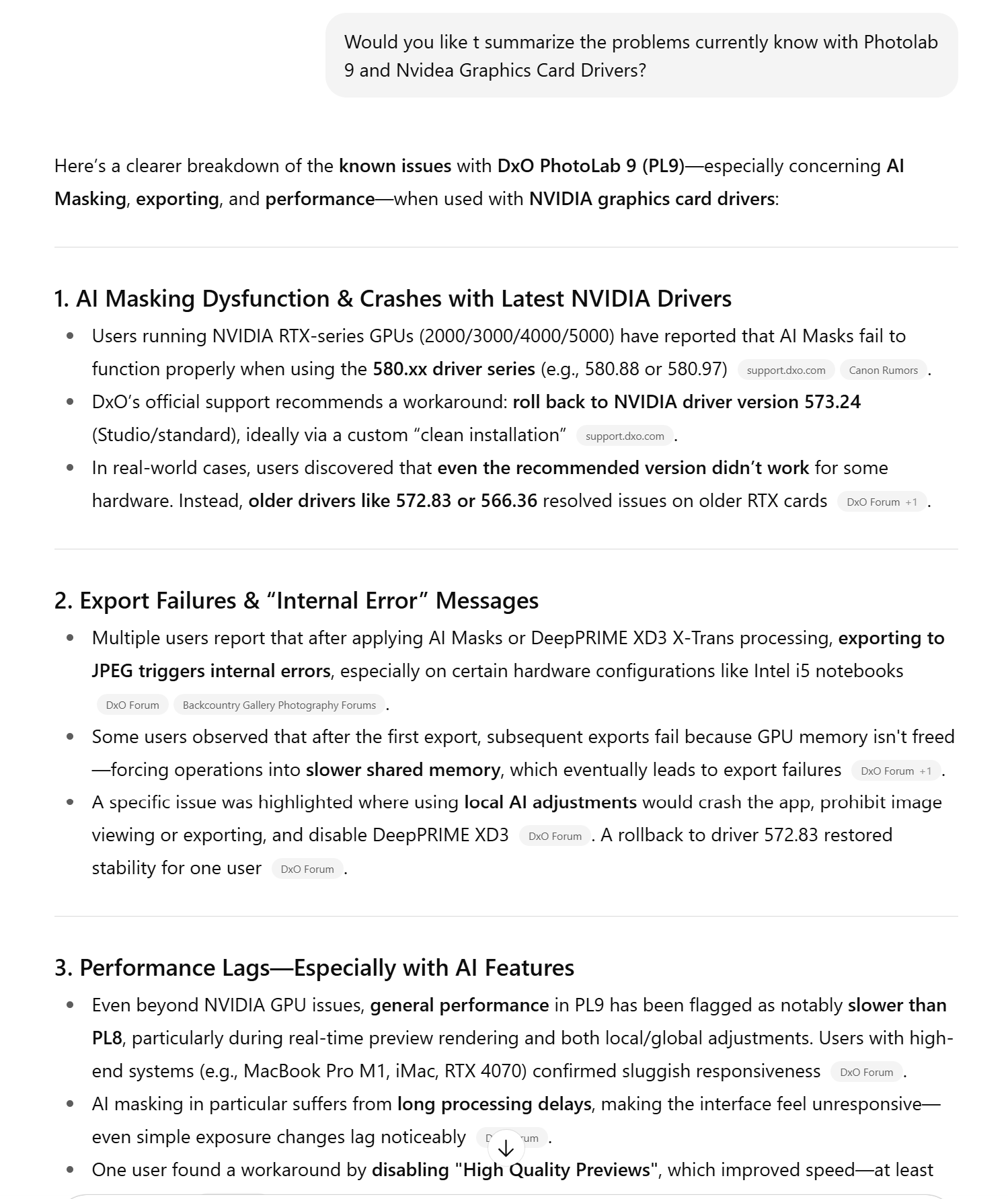 I dont´t think your critics of the sources is relevant at all - at leat with OpenAI and Chat GPT 5. You are totally free to go to official relevant DXO-pages and references from DXO Forums and even other sources