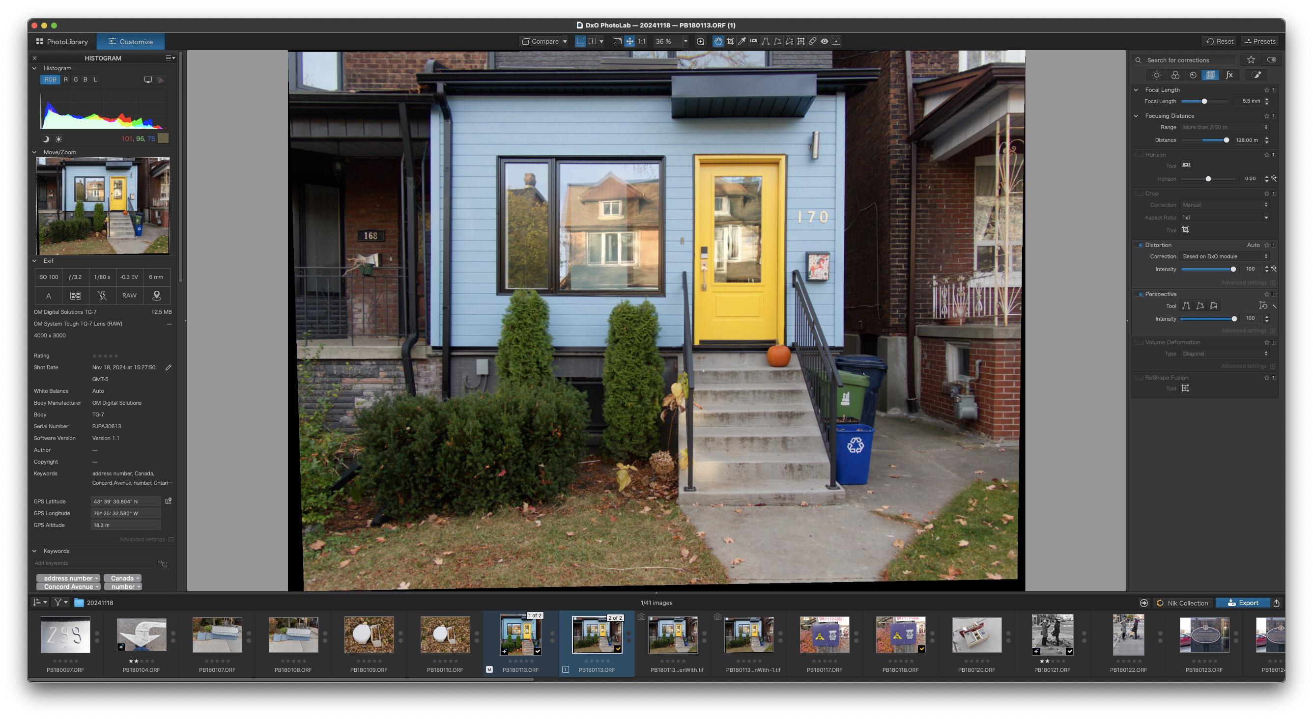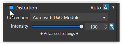 Since distortion correction relies on the correct DxO Optics Module, please confirm the camera model, lens model, and file type (RAW, JPEG, TIFF, etc.) used for the affected images.