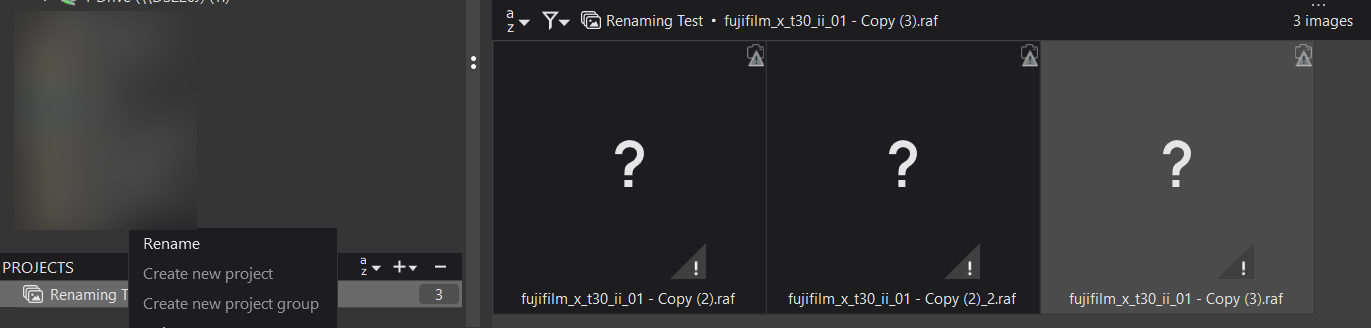 Basically don’t put images into ‘Projects’ until you are sure they are not going to move! If you move or rename using DxPL the ‘Projects’ keeps track of name changes etc…