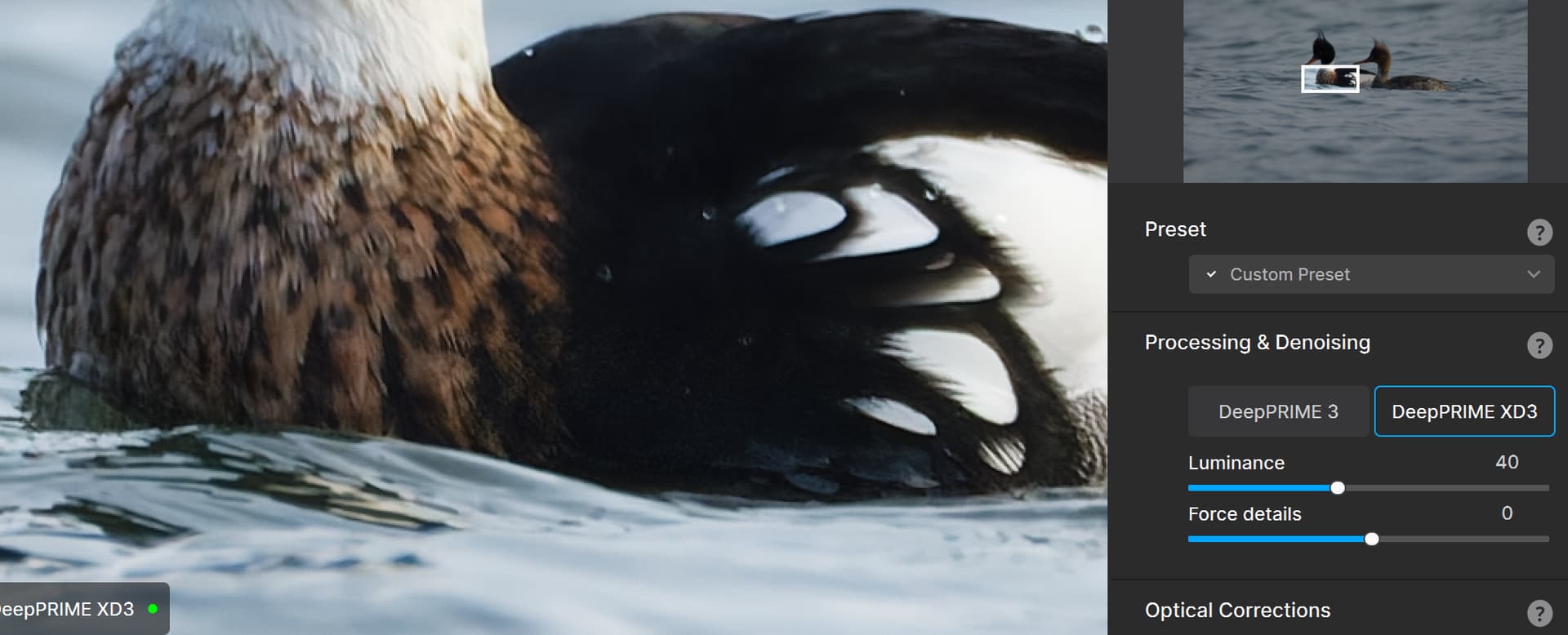 Upon closer inspection, I was disappointed to notice an artifact in this image when using DeepPRIME XD3 - there is a horizontal straight edge where the bottom section has more oversharpening while the top remains less sharpened. This is almost absent when I turn off Lens Sharpness but still quite visible when using the Soft preset (75).