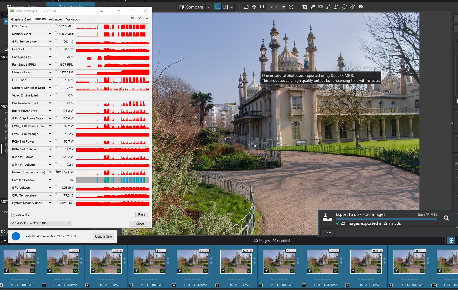When I started up PL91 this morning it hung attempting to display the first image so it needed to be terminated with prejudice and a second attempt resulted in this which shows that the 3060(12GB) has certainly not run out of memory!