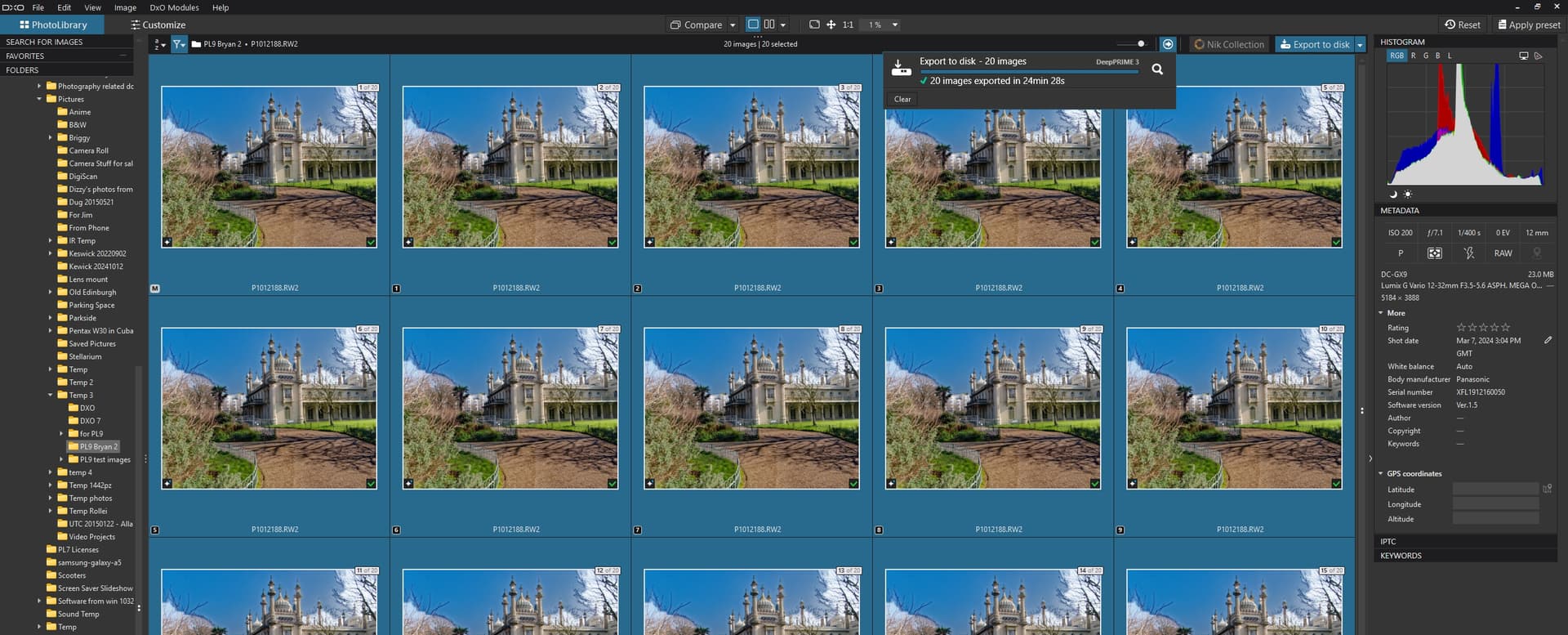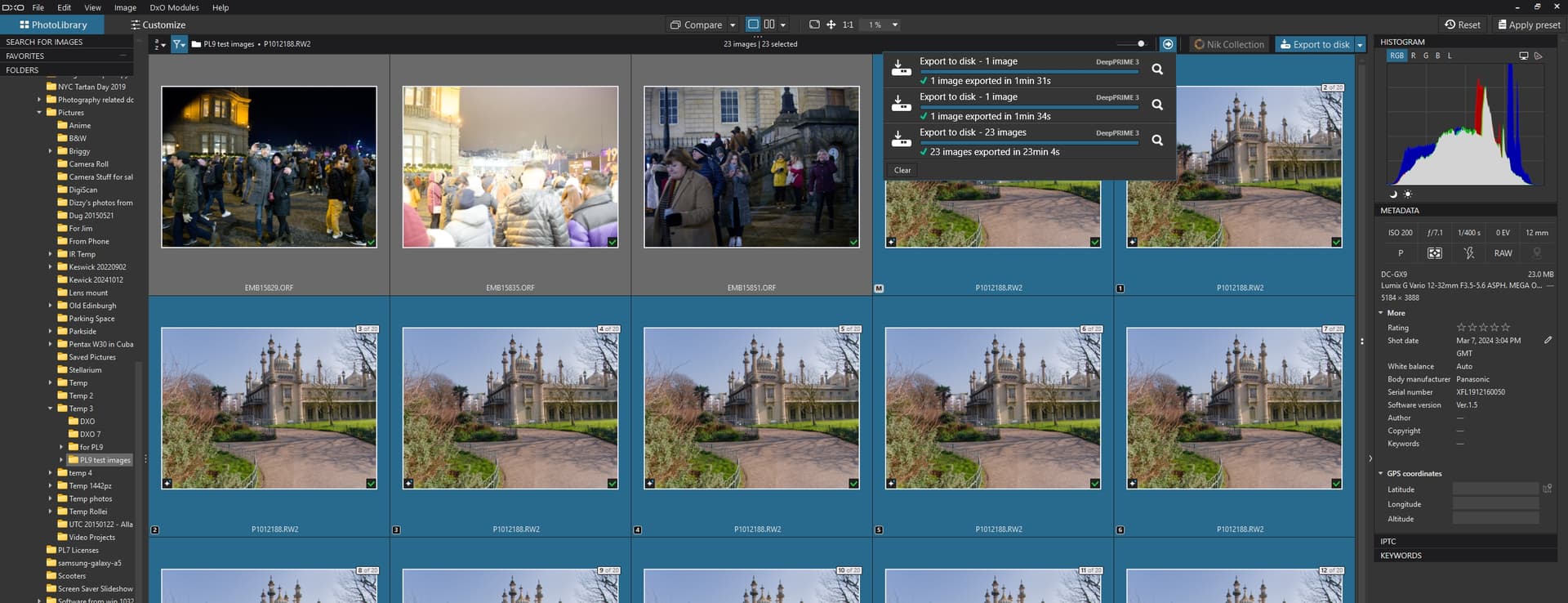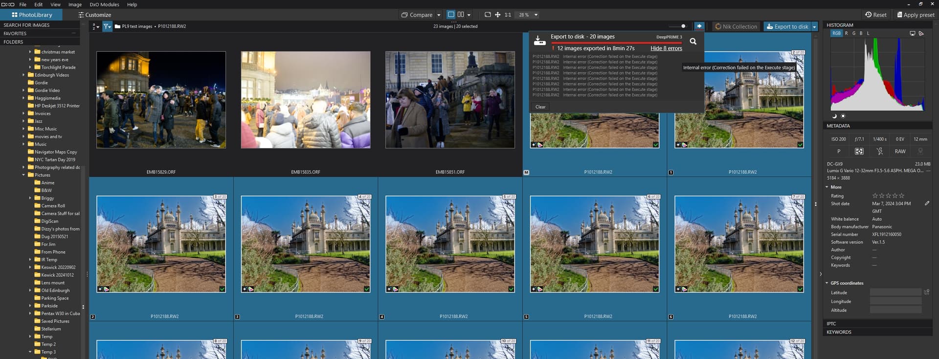 UPDATE:- I loaded the 572.83 drivers onto the 3060(12GB) and reran the test and the images were found and shown as you intended and the export, with two export copies, took 12213MB of memory and completed in 5min 36s.