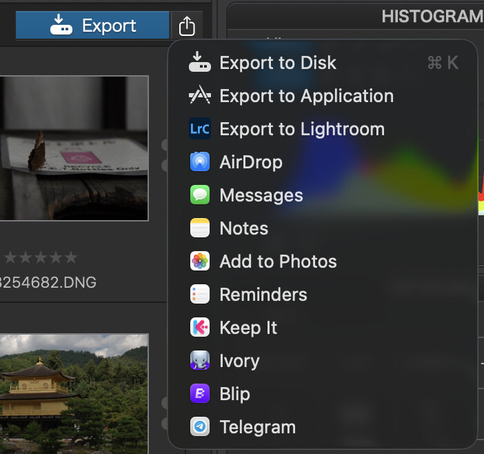 The Flickr and Lightroom options are simply shortcuts that can be useful and faster for people who use these applications. It’s a bonus, and we should thank them for it. The “Export to Application” option allows you to create other shortcuts for applications installed on your PC.