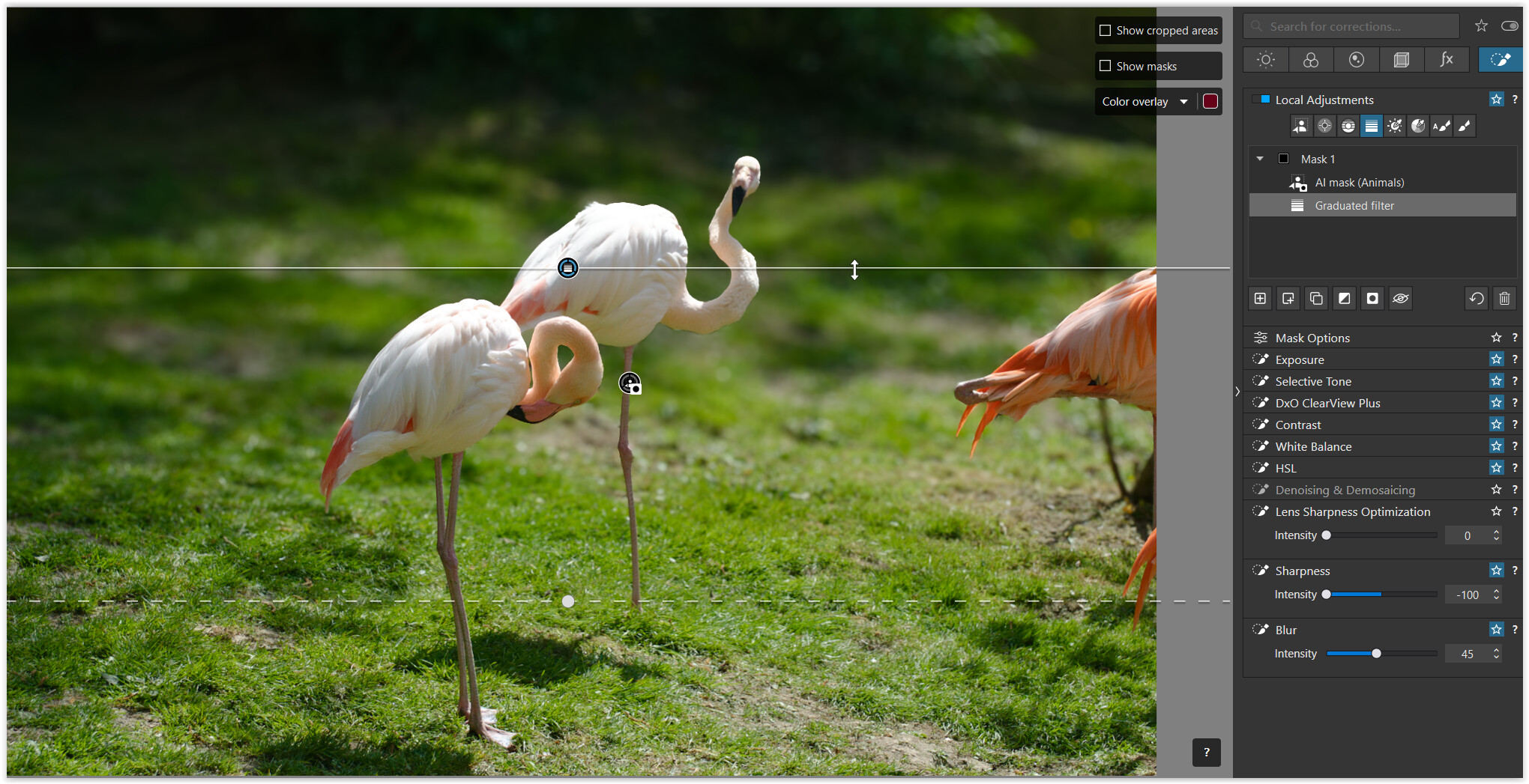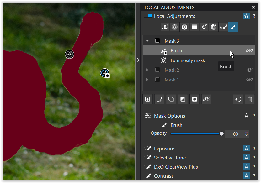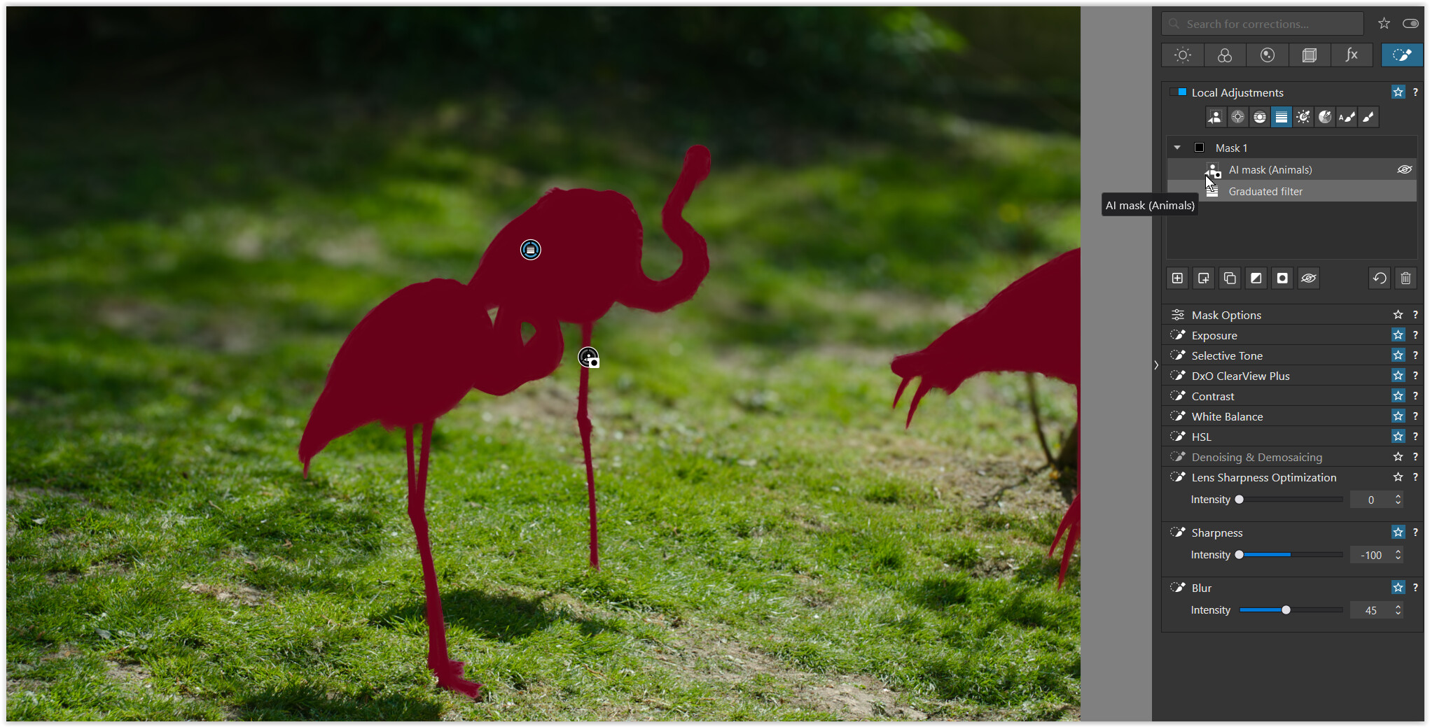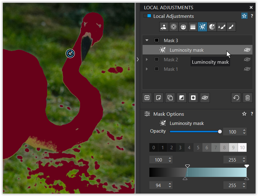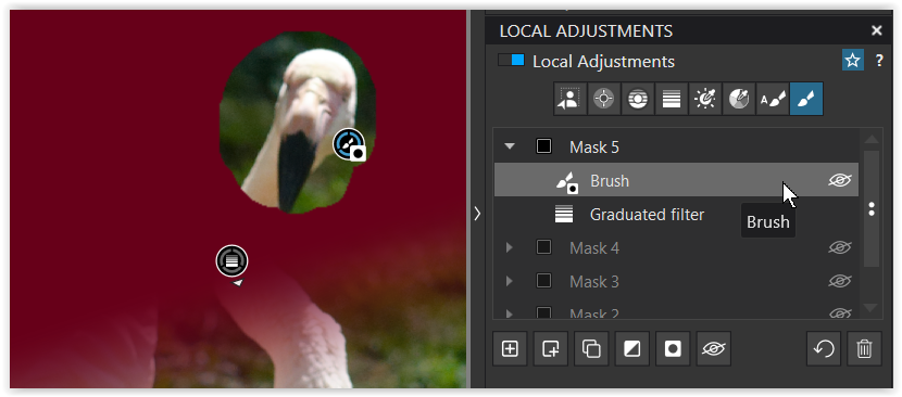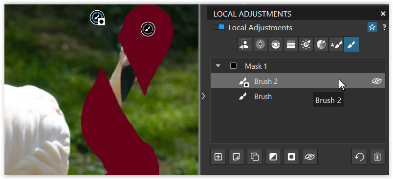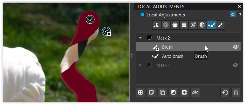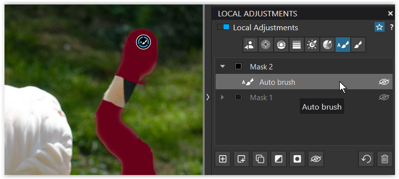 Generally speaking, I will apply adjustments to the whole of the bird and that mask is one I will carefully ‘fix’ if required. I usually just use a regular brush for this — sometimes positive, sometimes negative, sometimes both.