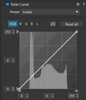 - For each of the R, G, and B curves, set them to the edge of clipping