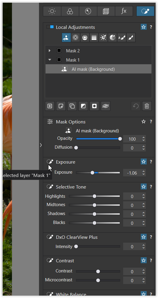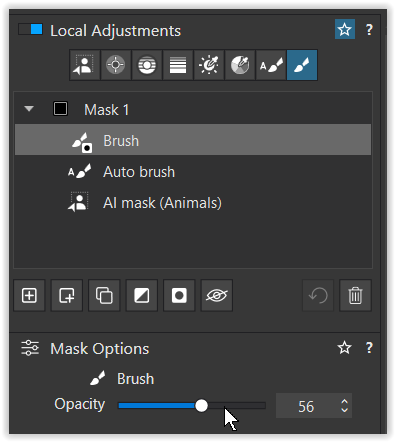 I recreated the problem by starting with a new file and adding 4 local adjustments: two AI masks (Background and Subject), auto brush, and a control point. The attached video shows that the Mask Options are stuck on the AutoBrush (called Eye) until I added a new mask with an control point. Hopefully the screen capture file is accepted.
