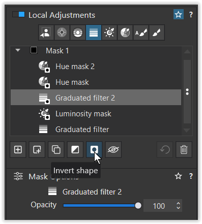 So the Invert Shape is just to protect/remove, which is under that name in Control Point or Control line… Why to name differently the same thing? Moreover why Graduated filter doesn’t have “protect/remove” button?