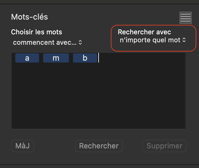 @Joanna most other software I tested would put the simple keywords from “a|m|b” as “a”, “m” and “b” rather than what DxPL was putting which was “a”,“b” and “m”.