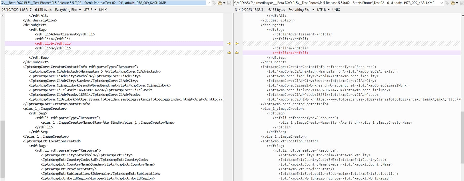 Concerning XnView it seem to work fine with IPTC when PhotoMechanic owns the metadata NOT so when updating from Photolab since Photolab only seem to send IPTC to the IPTC namespace in the XMP. One compatibility improvement ought to be to make Photolaab even update the older classic IPTC in the files and when they do it would be good even to change the way the change time flag is handled.