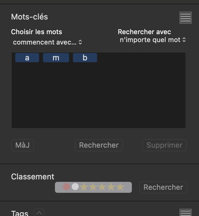 I had added “a|m|b” to the original @Stenis metadatata during my testing way back and in PL6.0.0 the order of the simple keywords had been alphabetical “a”, “b” and “m” in the sidecar and now it is “a”, “m” and “b”!