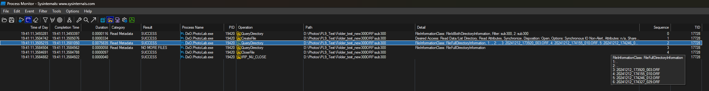 @SchorschGaggo I replaced “Procmon” for Nirsoft “FileActivtyWatch” (FAW) and set the ‘Advanced Options’ to focus on PhotoLab