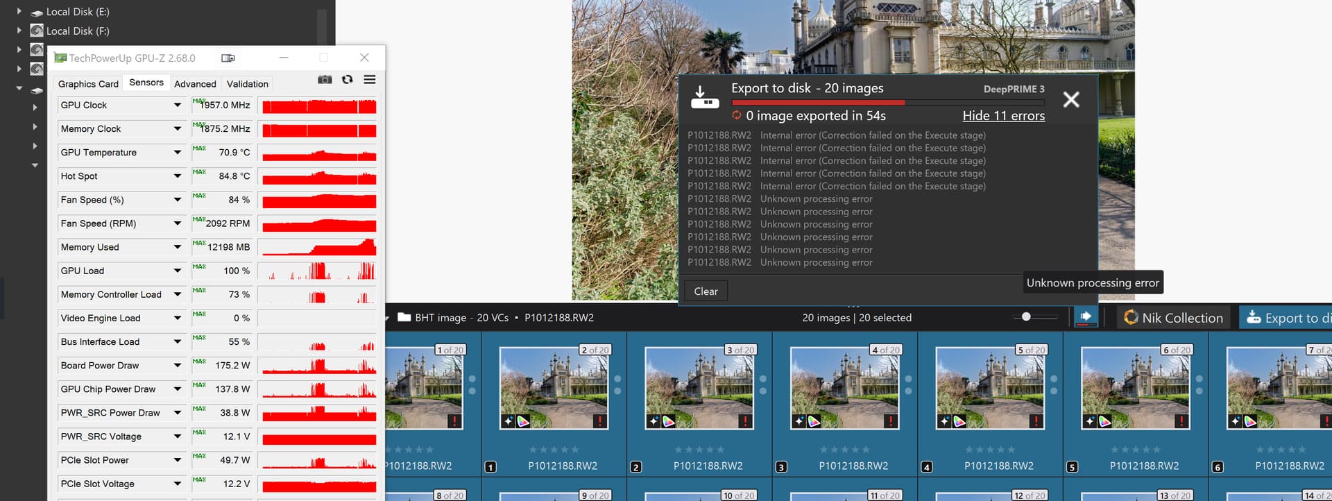 So this is my 5600G 3060(12GB), 10 images with âSkyâ selected and the export without any NR set worked but was very close to the 12GB of the 3060. With all 10 images selected I set DP3 on all and tried another export and got this