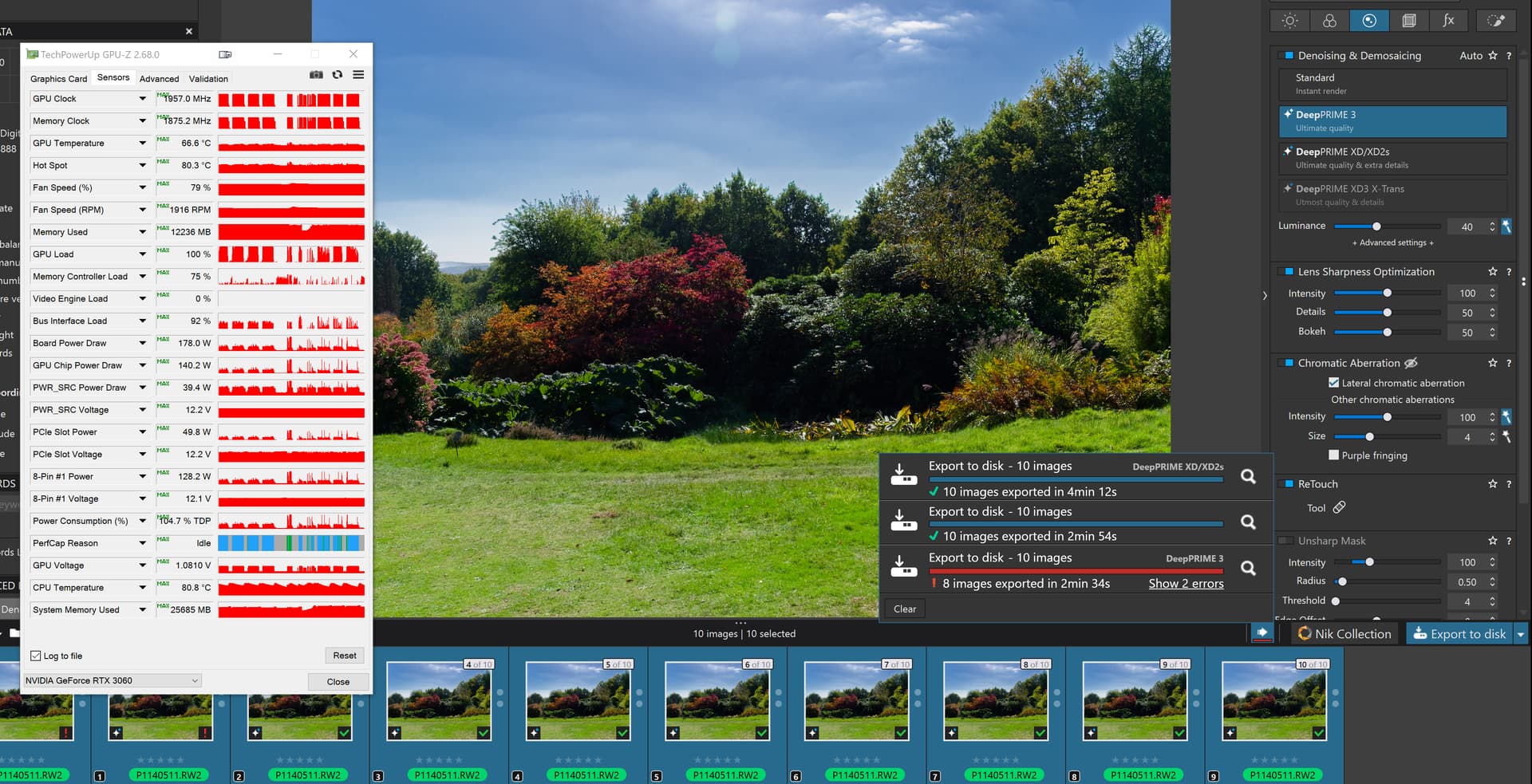 - Set all images NR to DP3 and export again