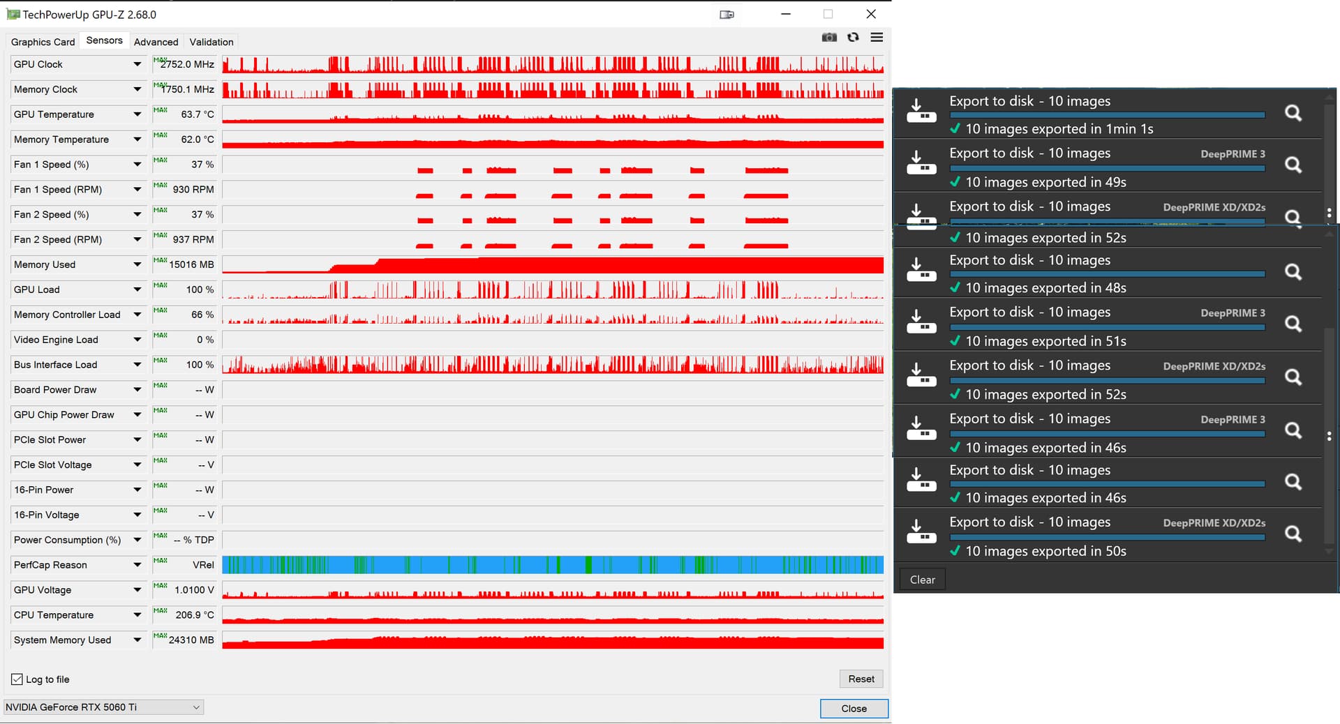 No matter what I did the 5060Ti(16GB) held up perfectly. It consumed nearly all the VRAM but that appears to be the case on both my 12GB 3060 and on the 16GB 5060Ti, my tests seem to result in the VRAM consumed being always close to the limit!?