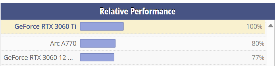 Where did the polite tone go BAYT talking about “fixation”. I just happen to have the card I have and that is 3060Ti 8GB and if index is 100% for that card the performance of 3060 12 GB is 77%. (TechPowerup.com)