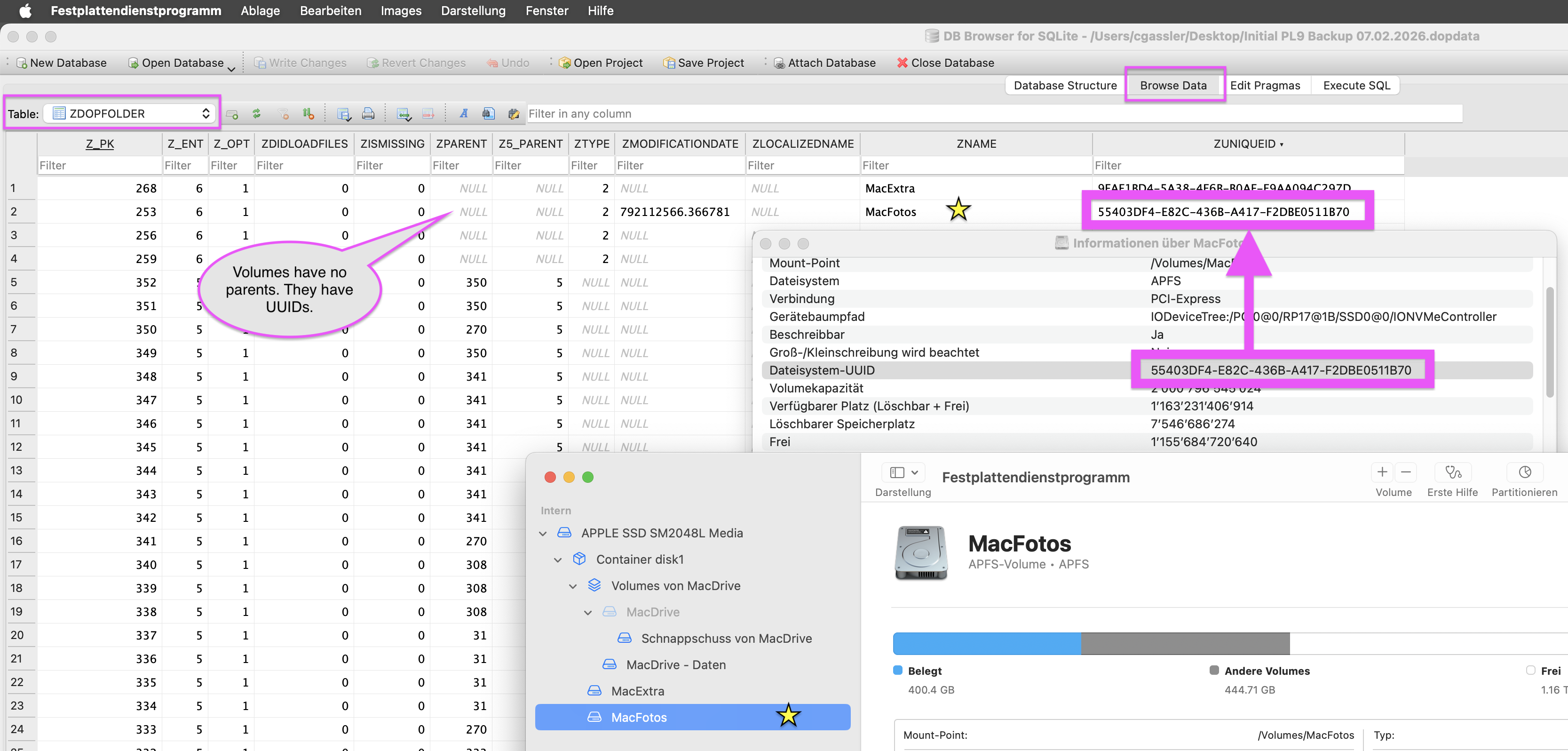 This can happen (after a cache cleaning and other load on the system?)…but in my case, the “?” files were disconnected due to that UUID change. Looking at the ZDOPSOURCE table and parents/folders/volumes and respective UUIDs, the case was clear.