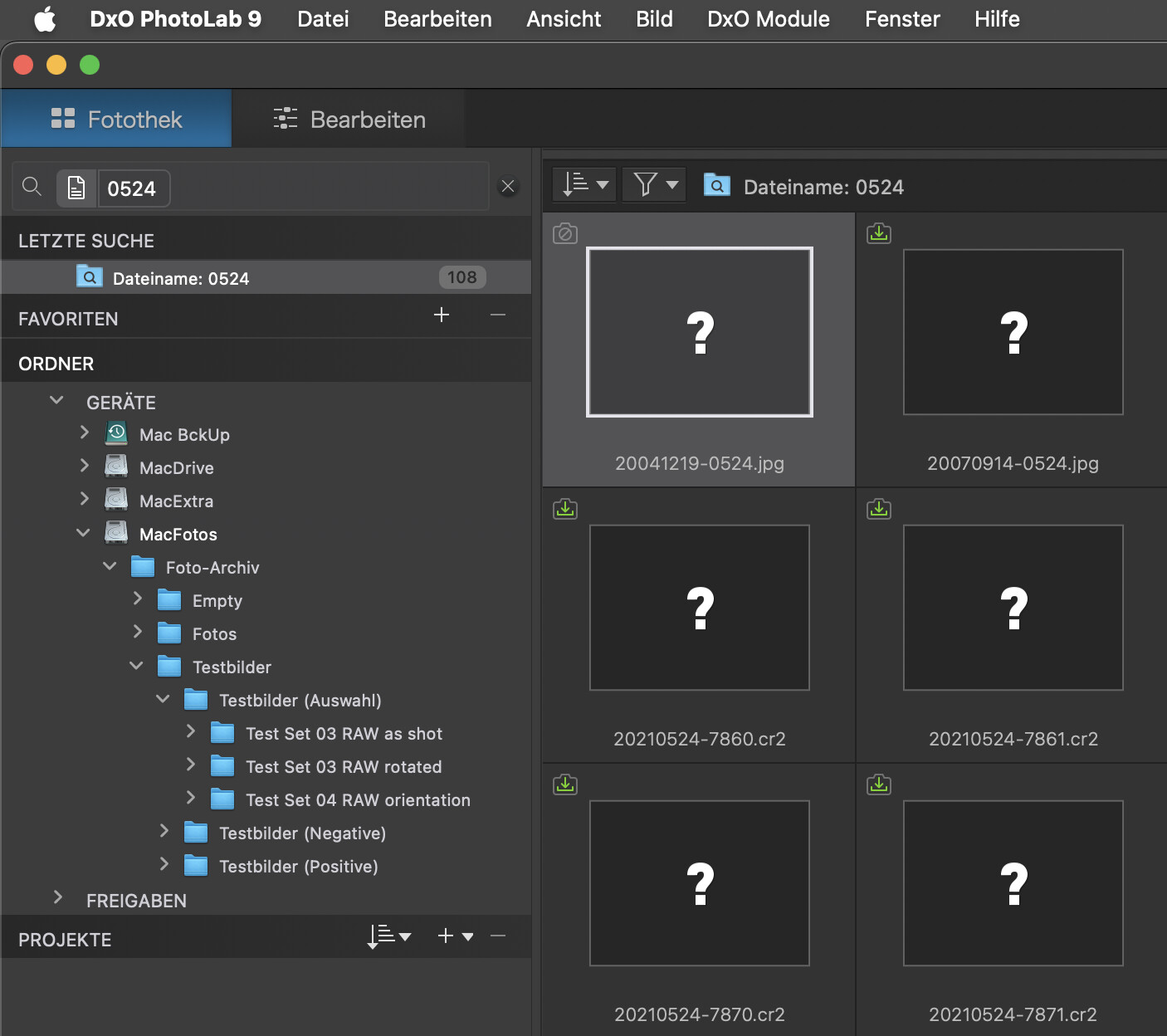 In DxO PhotoLab 9, when a folder has been moved outside of PhotoLab (for example, using Finder), the software will mark it as missing in the database.