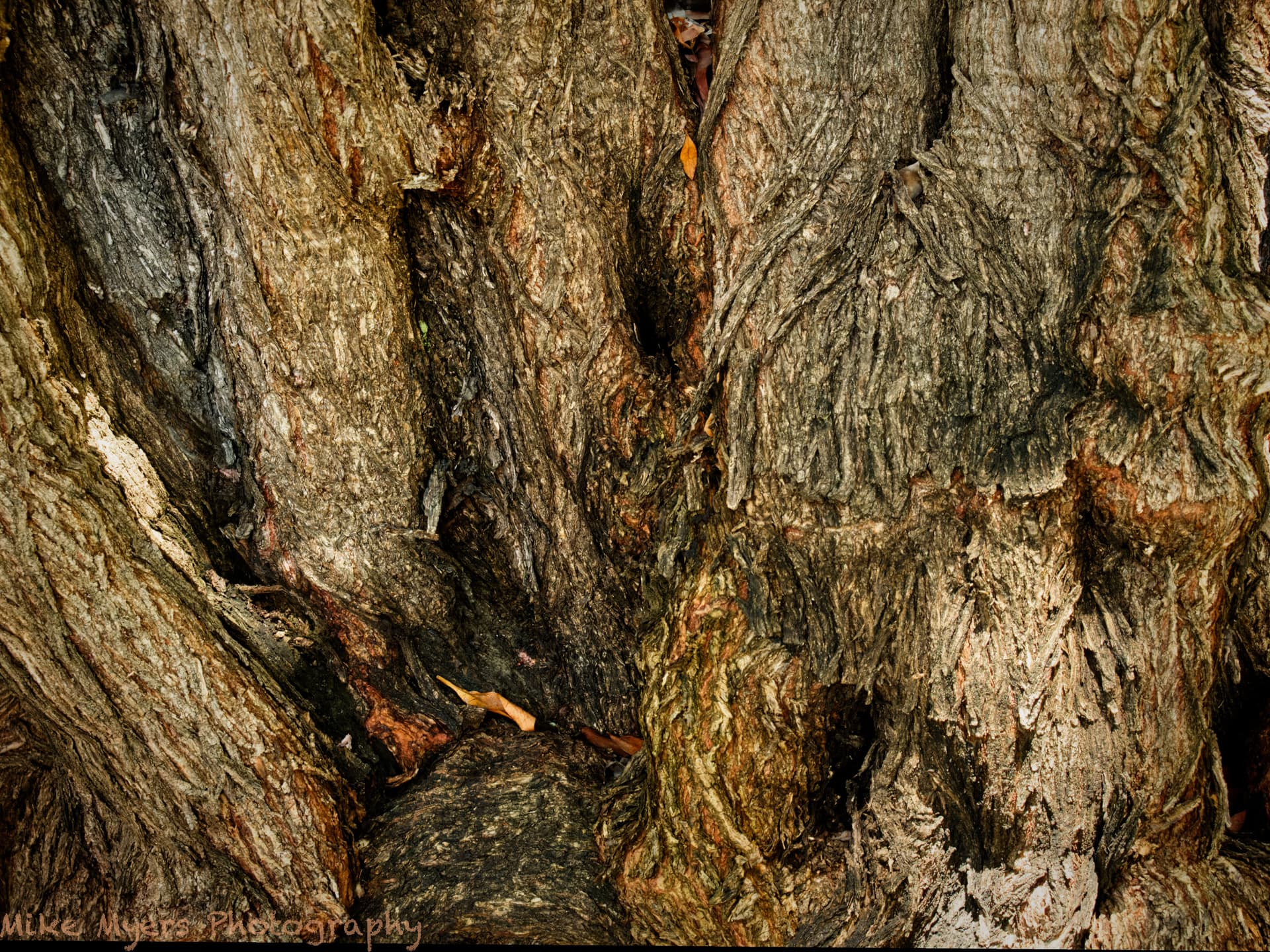 The other day, before I was overwhelmed by my friendly squirrel, I was walking home from the food store, and since it was still morning, the lighting on several huge trees I was walking by was very different from when I used to take photos of them later in the day. I set my food bags on the ground, and tried to capture what I felt, while looking at three of the most interesting trees. This photo fascinated me, because of the colors, the texture, the shapes, and a few colorful leaves that were caught in the tree.
