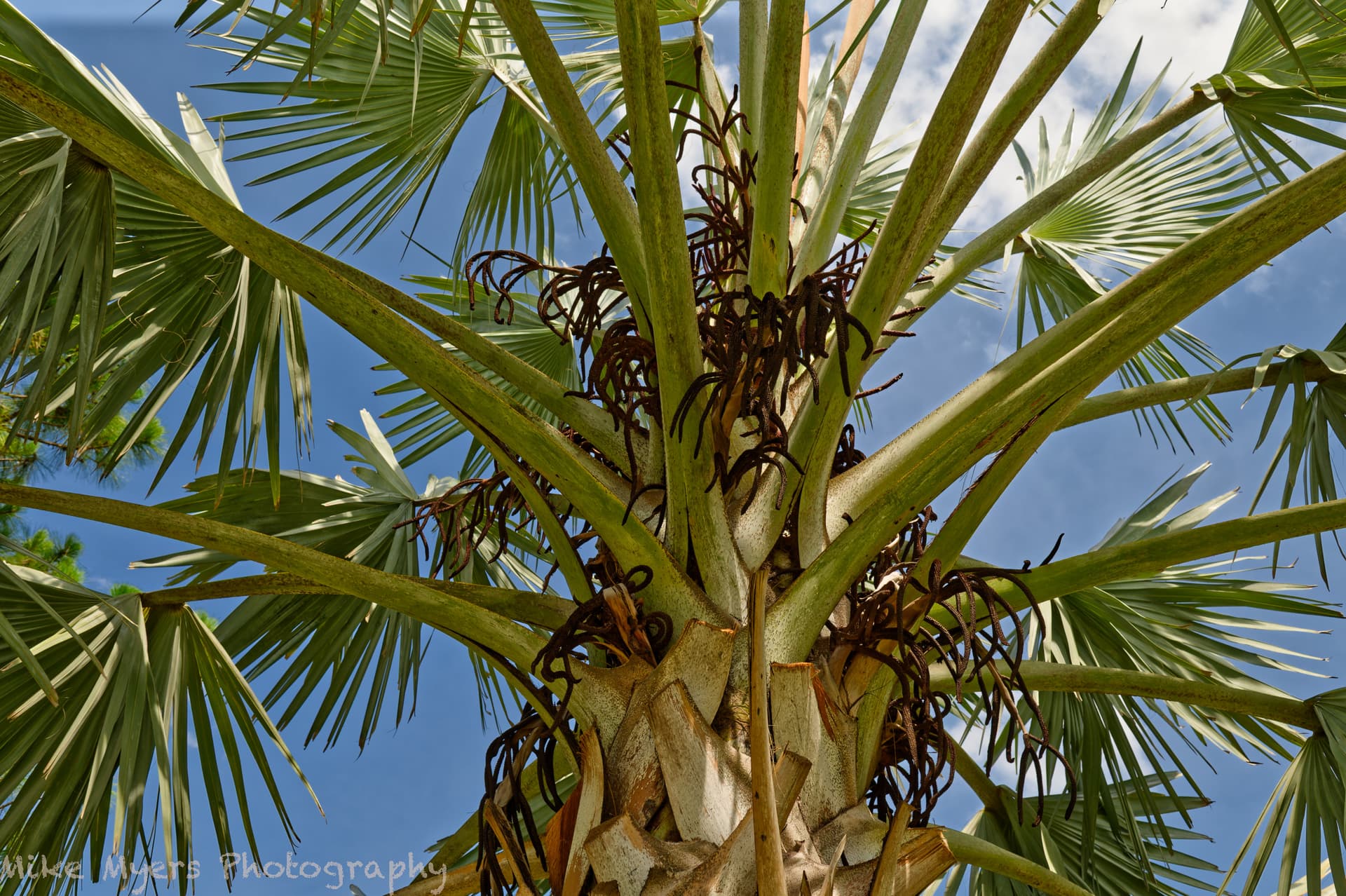 For the past several years, when I visit my brother at his home in Fellsmere, there is one palm tree that has always intrigued me. It was just a “normal” tree until a few years back when these “tentacles” started coming out, which apparently are “seed pods”. I usually take a “normal” photo of the tree, but on this last visit I stood beneath the tree, shooting upwards at the bright blue sky. I guess I could call this “natural art”.