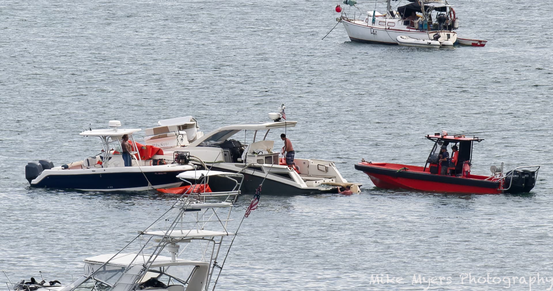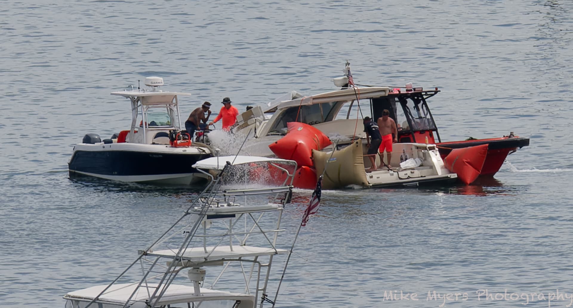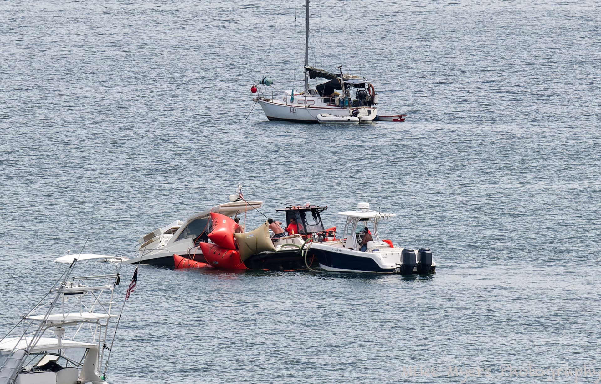 I did use PhotoLab to edit these three photos, but the action was far too far away to get good photos. One of the boats in Biscayne Bay near my home sank, and the workers raised it using huge orange “balloons”, hosed it off, checked it over, and a tow boat came to tow it back to a place where it could be fixed.