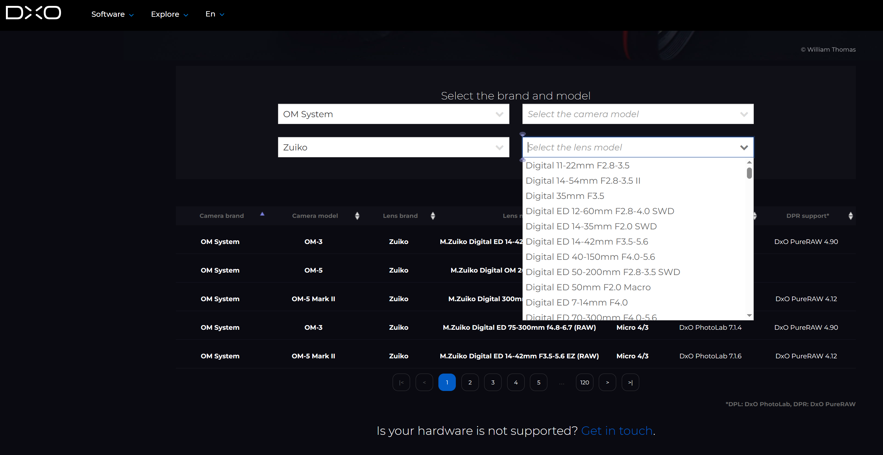 I saw the same behaviour as is mentioned in the first posting to this topic: Hi there, I’m trying to request lens support on the site, but it’s not allowing OM SYSTEM as an option (it only appears under cameras). End excerpt. Now that I know it is under Zuiko, that is what I shall use. However, when I use either Mozilla Firefox or Google Chrome, neither displays the list. Only when I used Microsoft Edge (a Chrome derivative) did I see the full list for Zuiko. Thus, with Edge, the list does work (if one knows to call the lens Zuiko, not OM System nor Olympus). The same is true for Nikon lenses as these are listed under Nikkor – nonetheless, most photographers I know think Nikon and not the Nikon trademark lens name of Nikkor, and thus not the Olympus/OMDS trademark lens name of M. Zuiko abbreviated to Zuiko by DxO. Again, I have current production Firefox and the list does not correctly display, whereas this does work with Edge. (Aside: I wish all websites were compliant with W3C and Internet standards, and not use various proprietary “standards” such as those from Microsoft or Apple.)