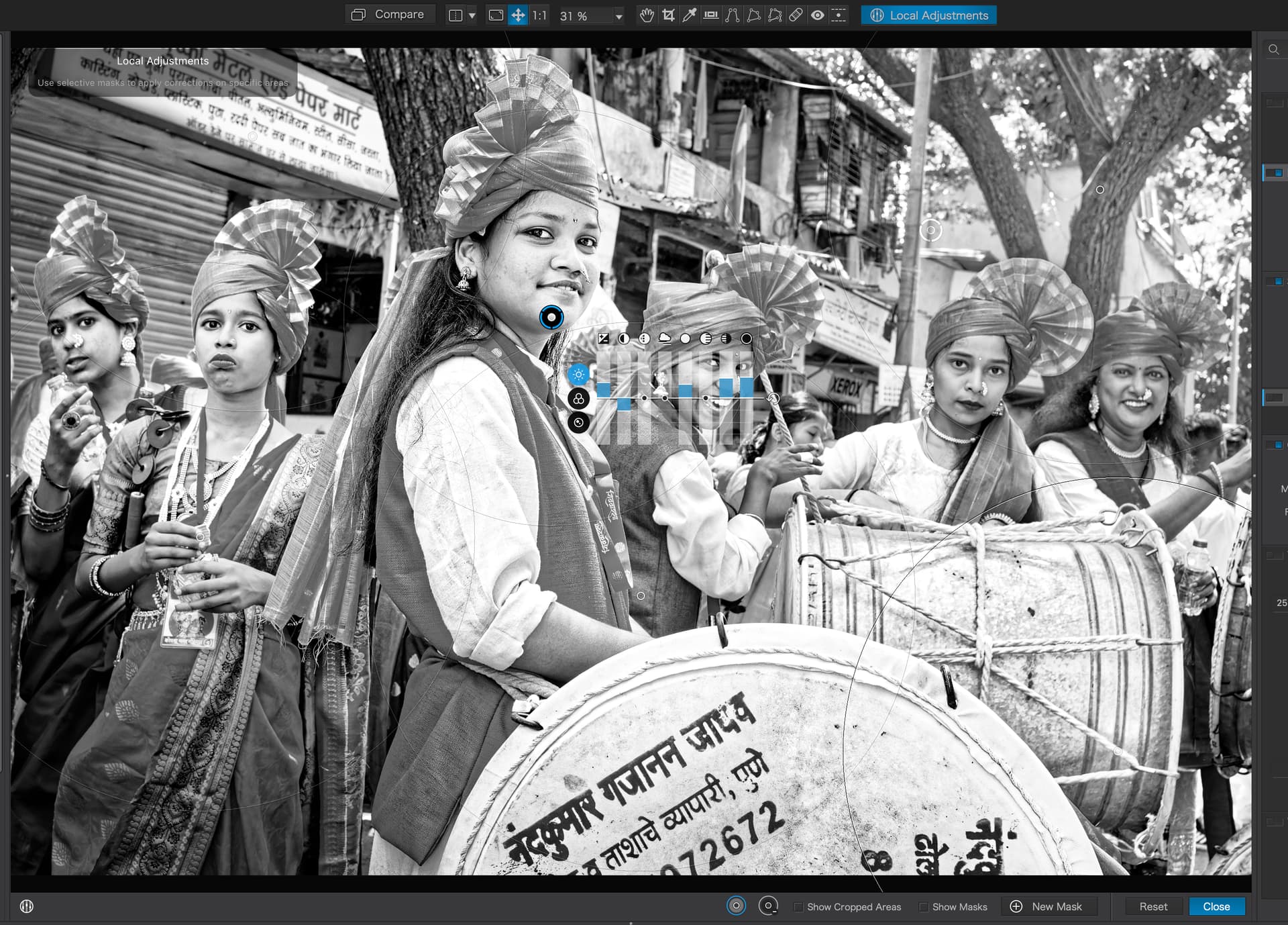 So far, PhotoLab has been easy to use, but some of it was lost by changing the ui text size and colour, showing items that are not licensed, by seemingly random combinations of tools into a tool panel and the somewhat complicated logic of when a local adjustment mask is shown or not shown.