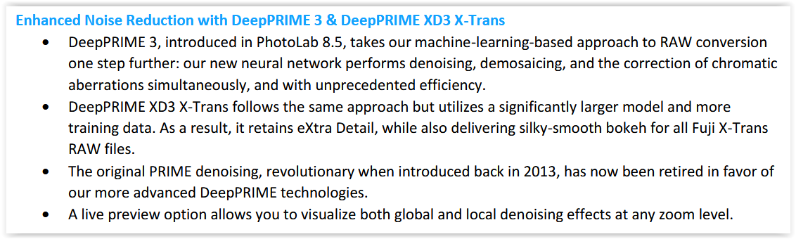 It’s possible that DeepPrime 3 corrected some colors that were ‘detected’ as chromatic aberrations at any zoom level. – However, I do not have suitable images to verify whether this correction maintains the color reproduction you desire.