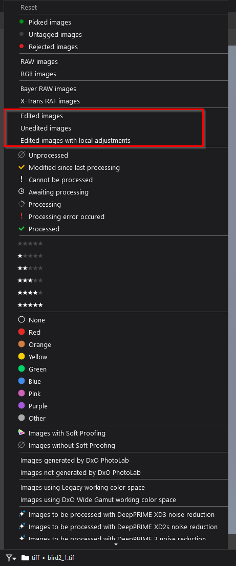 New image filters:- Added filters to quickly display images with corrections, with local corrections, or unedited images.