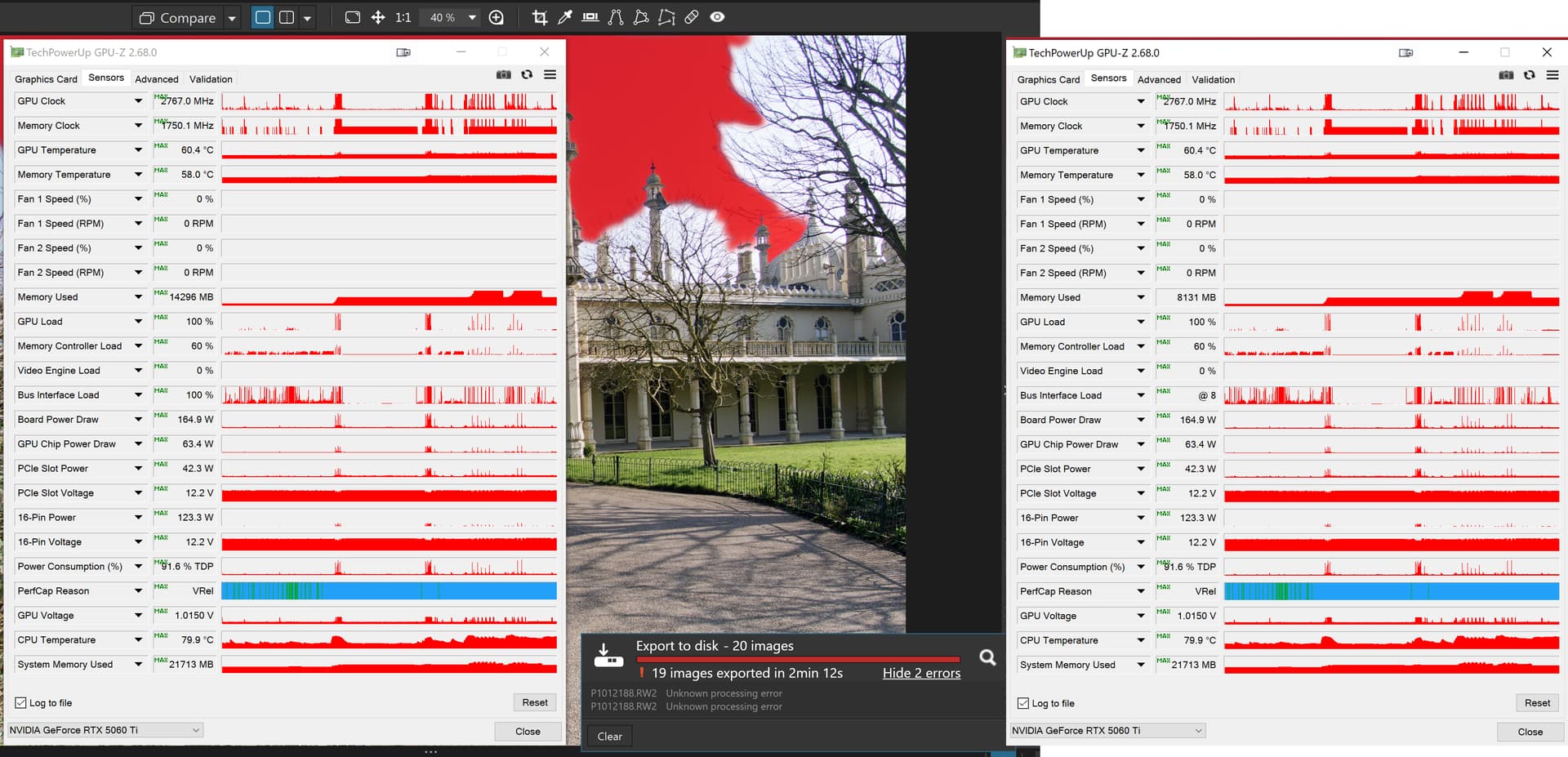 The repeat test on the 5060TI(16GB) was just a simple export of the 20 images (VCs) and we have