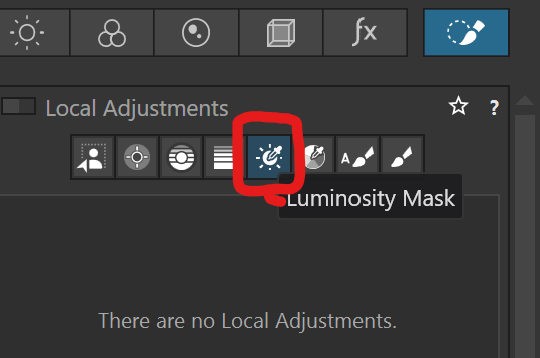 If FilmPack has been activated, you should see the Luminosity mask icon on the icon bar on the top of Local Adjustments. I have circled it below.